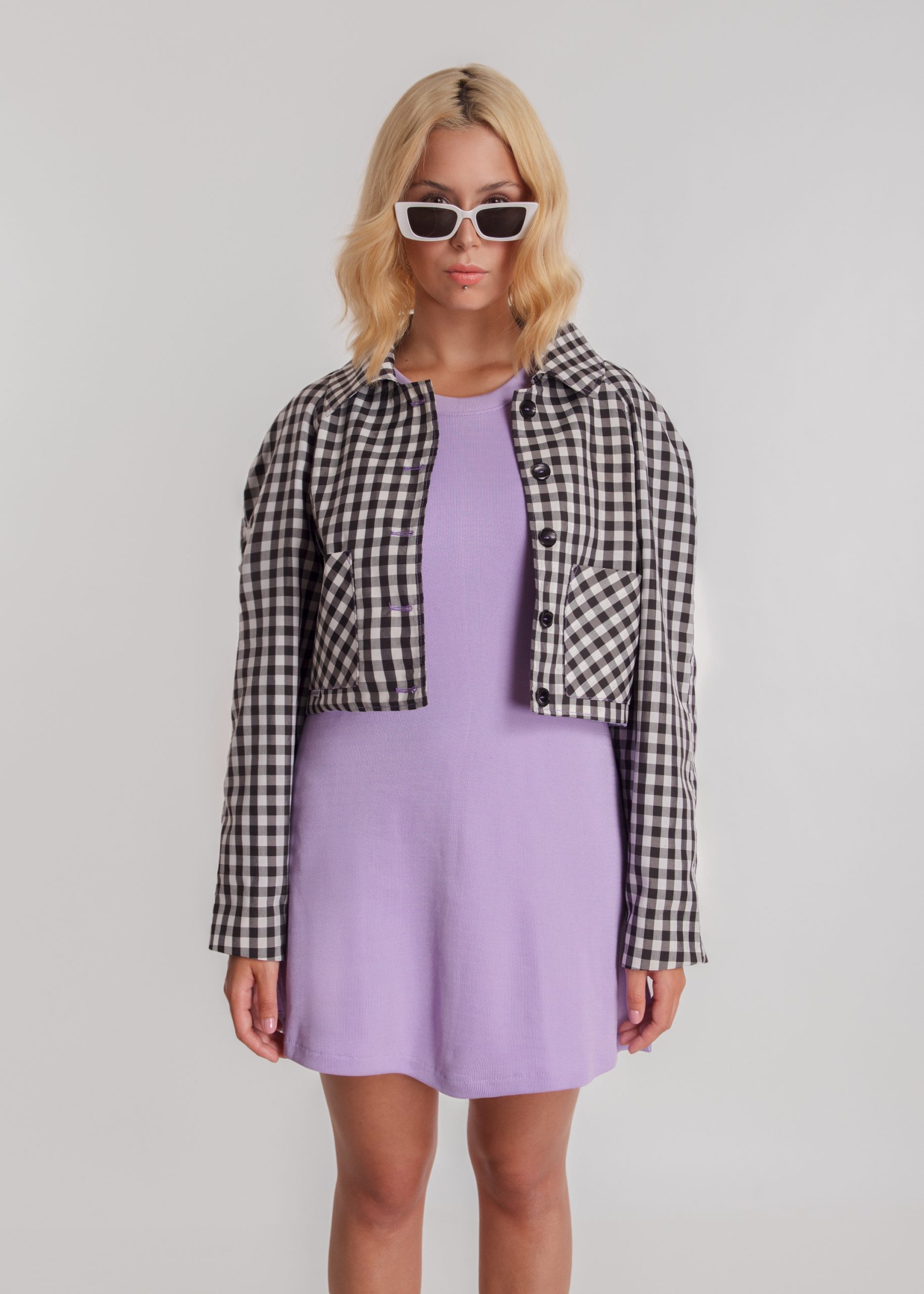 Chaqueta holgada de largo normal. Completamente forrada, mangas tipo ranglan, cuello camisero, abotonadura frontal con 5 botones y ojales, 2 bolsillos tipo parche.